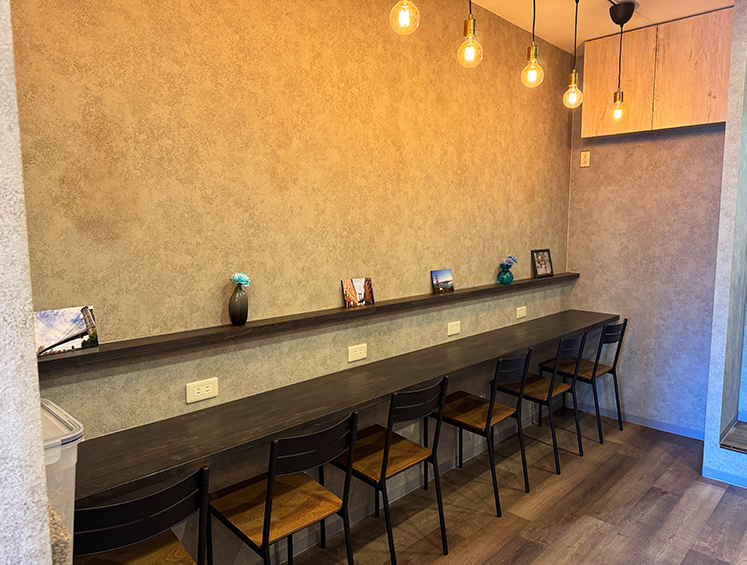 奥のカウンター席にはコンセントが完備されています。少しPC作業をしたいときなどに便利で助かりますね。