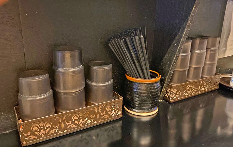 座席の横には荷物カゴがあって、わりと隣とも空間があるのでゆっくり食べることが出来ます。