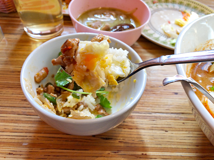 まずはご飯ものということでガパオライスを注文してみました。ふっくらと焼きあがった半熟卵がライスと具材にしっかり絡んでまろやかかつスパイシーな味わい。