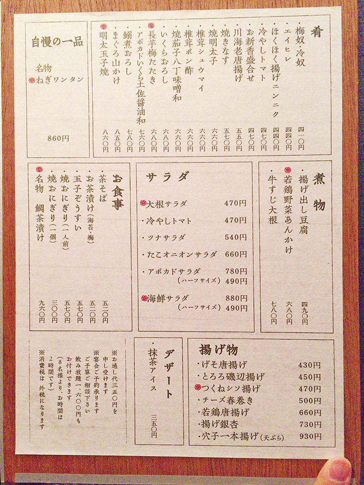 おでん単品は180円~340円で、盛り合わせは七品で1120円です。メインメニューの他に、今宵はこれで一杯のお品書きにも美味しそうなメニューが並びます。