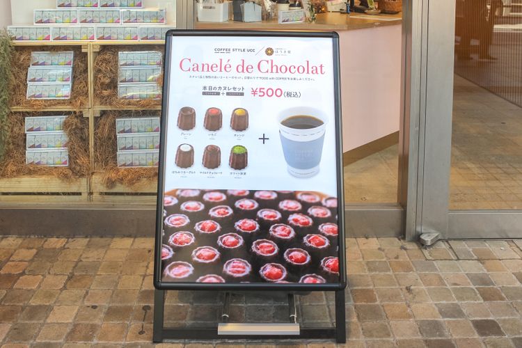 カヌレはUCCと沖縄黒糖カヌレ専門店「ほうき星」で共同開発したもの。テイクアウトもでき、4個単位で販売しています。