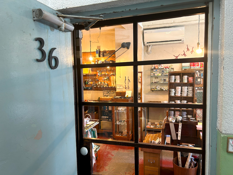 入り口から「36 Sublo」の店内を覗くと、アンティークな家具と照明、そこに並ぶカラフルなたくさんの雑貨が見えて、お店に入る前からテンションが上がってしまいます。