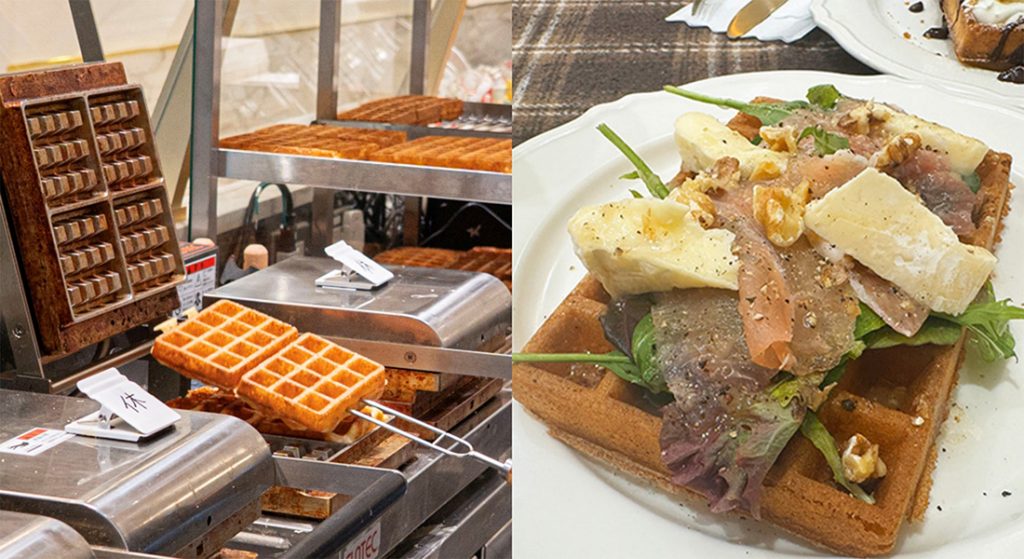 そのため、しょっぱい系のトッピングと相性が抜群!生ハムやカマンベール、くるみ、ベビーリーフが乗ったワッフルはまるでサラダのようにいただけます。