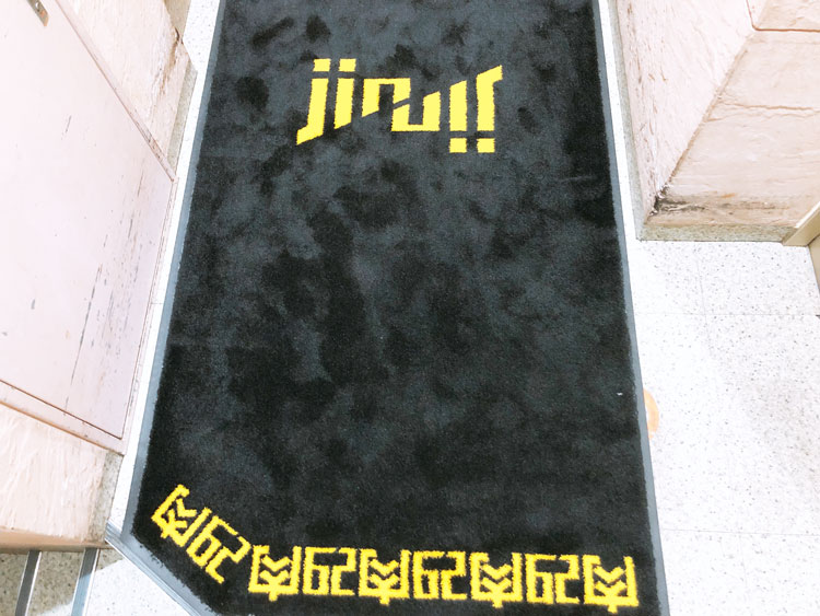 そして下に目線を向けるとマットもお店のドアも肉!(笑)