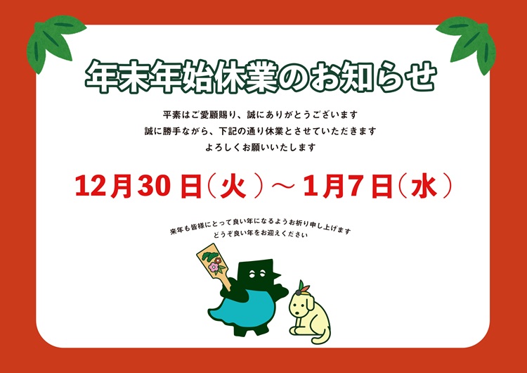 殖産ベストの年末年始休業は下記のとおりとさせていただきます!
