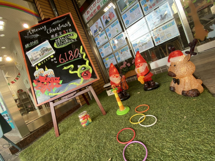 店頭のトナカイの横に配置しました、期間限定ですのでお早めにご覧ください。