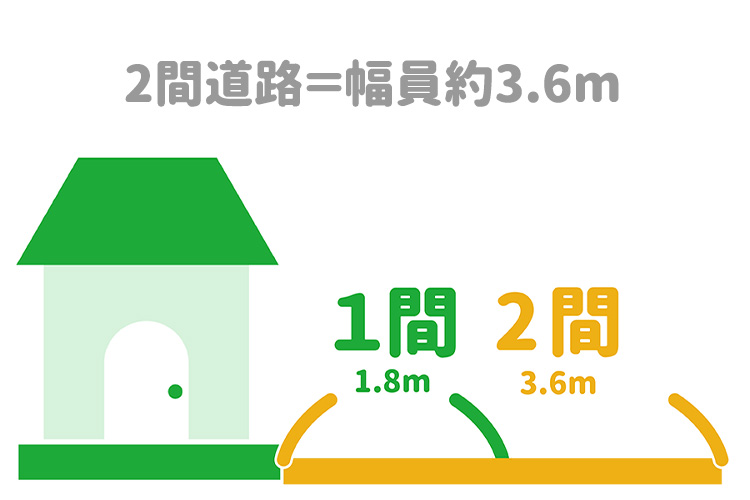1間=約1.8mで、古くからある住宅街ではいわゆる「2間道路(にけんどうろ)」と呼ばれる、道路の幅が約3.6mの道路が今もまだあちこちに残っています。